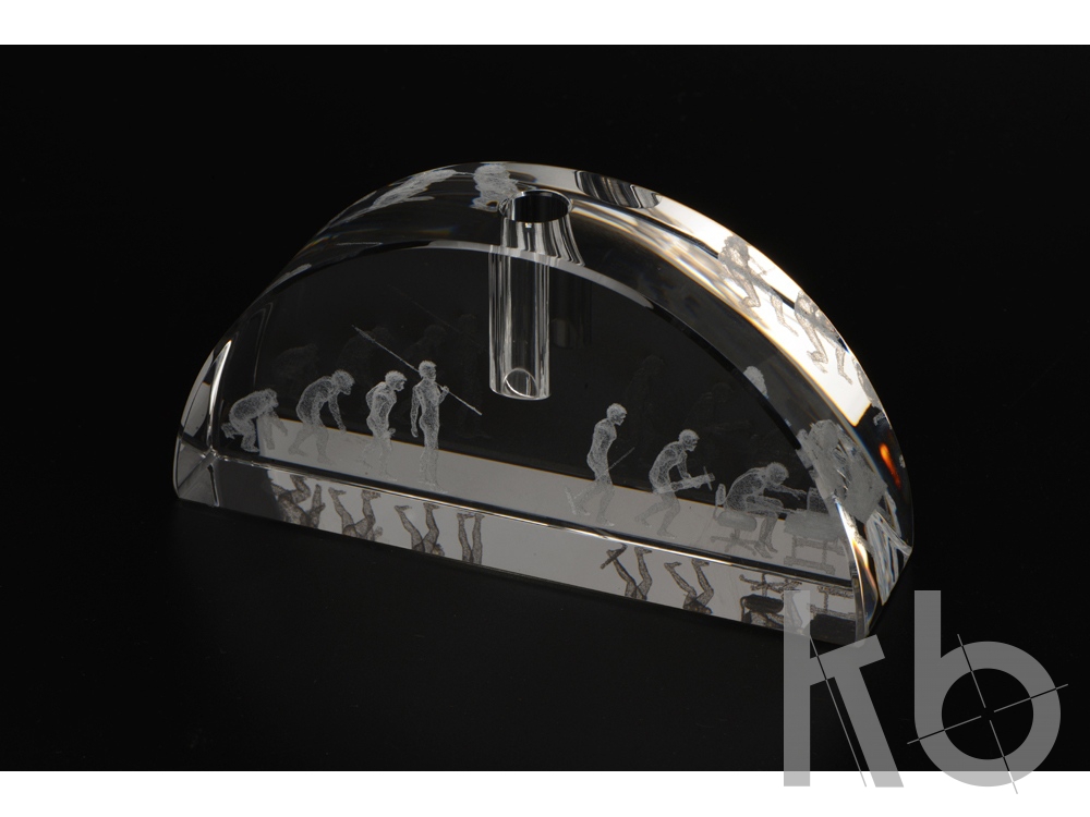 Настольный прибор «Эволюция» из оптического стекла оригинальный предмет для рабочего стола.