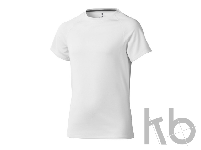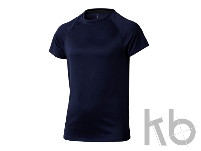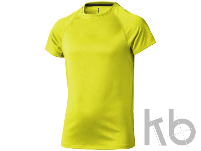 Детская футболка Niagara. Стандартный покрой. Отражающий лого сзади. Cool Fit. Тонкий шов на рукавах реглан. Небольшой двойной шов на рукаве и внизу на кромке. Атласная лента внутри горловины. Сетчатый материал, 100% полиэстер с дышащей поверхностью. 145 г/м².
