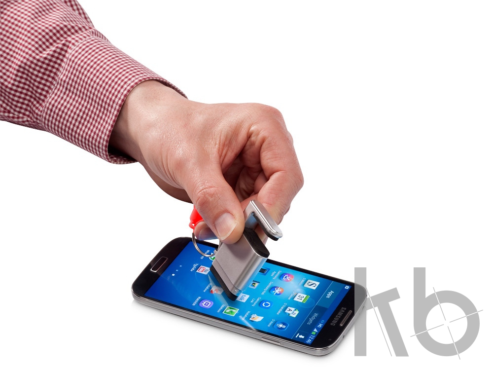 Подставка-брелок для мобильного телефона с губкой для чистки экрана. Функциональный промо-сувенир для продвижения цифровых устройств с сенсорным экраном: мобильных телефонов, планшетов, фотоаппаратов и т.д. Различные расцветки. Возможно нанесение изображения по вашему эскизу.