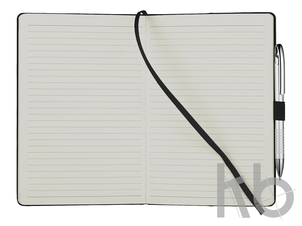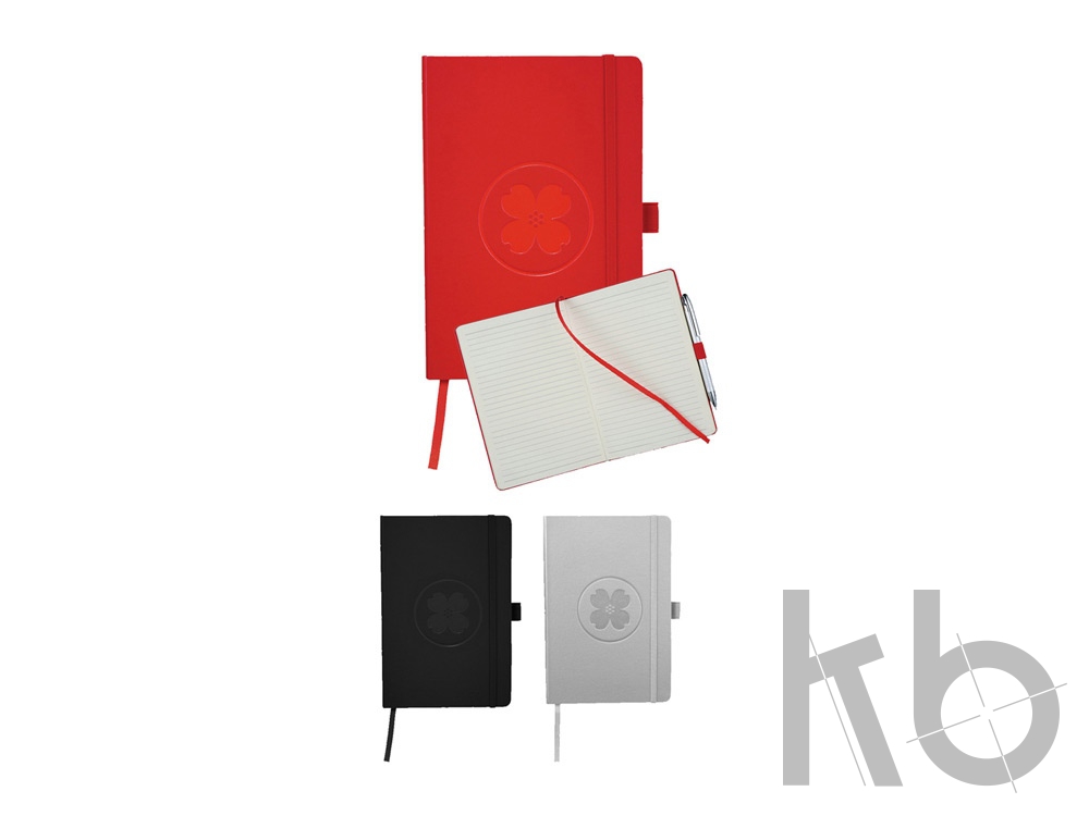 Офисный блокнот Flex. Блокнот со сгибающейся задней обложкой для легкости листать страницы. Эластичная застежка, тканая закладка и 80 листов линованной бумаги (80 г/м²). Запатентован. Картон.
