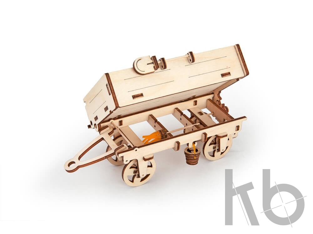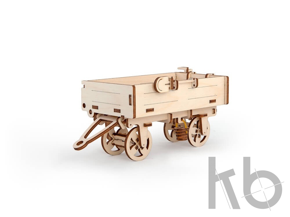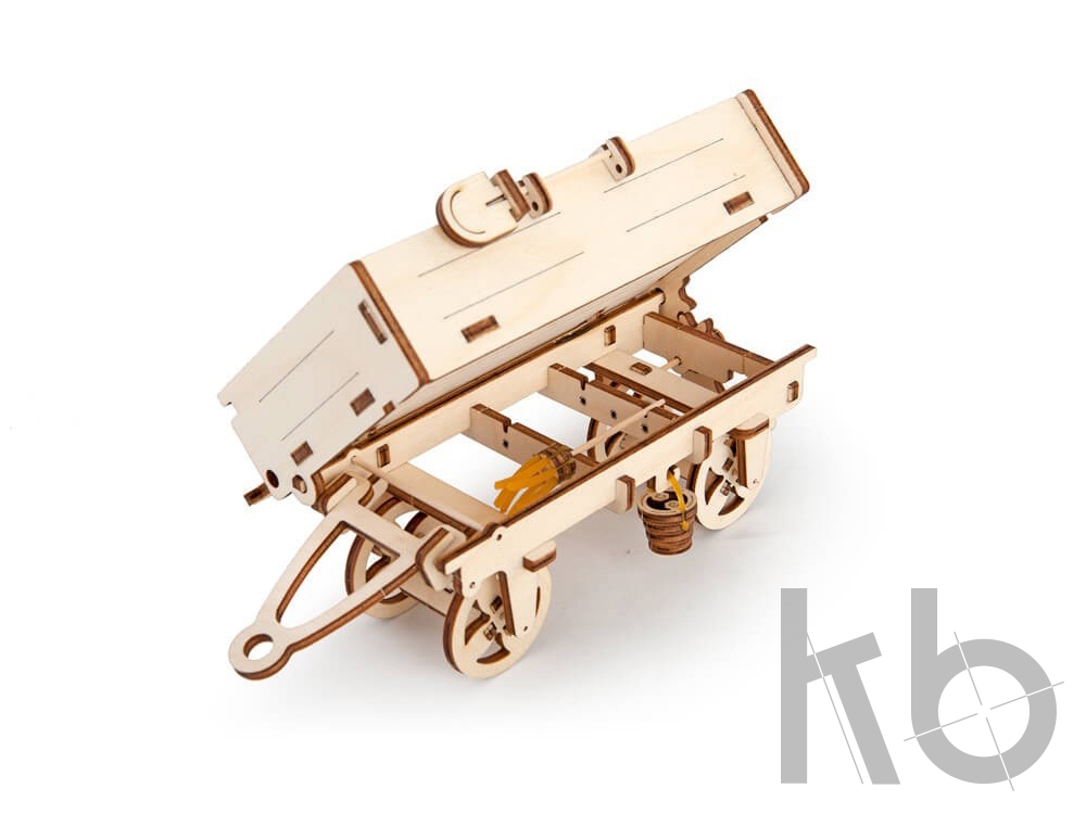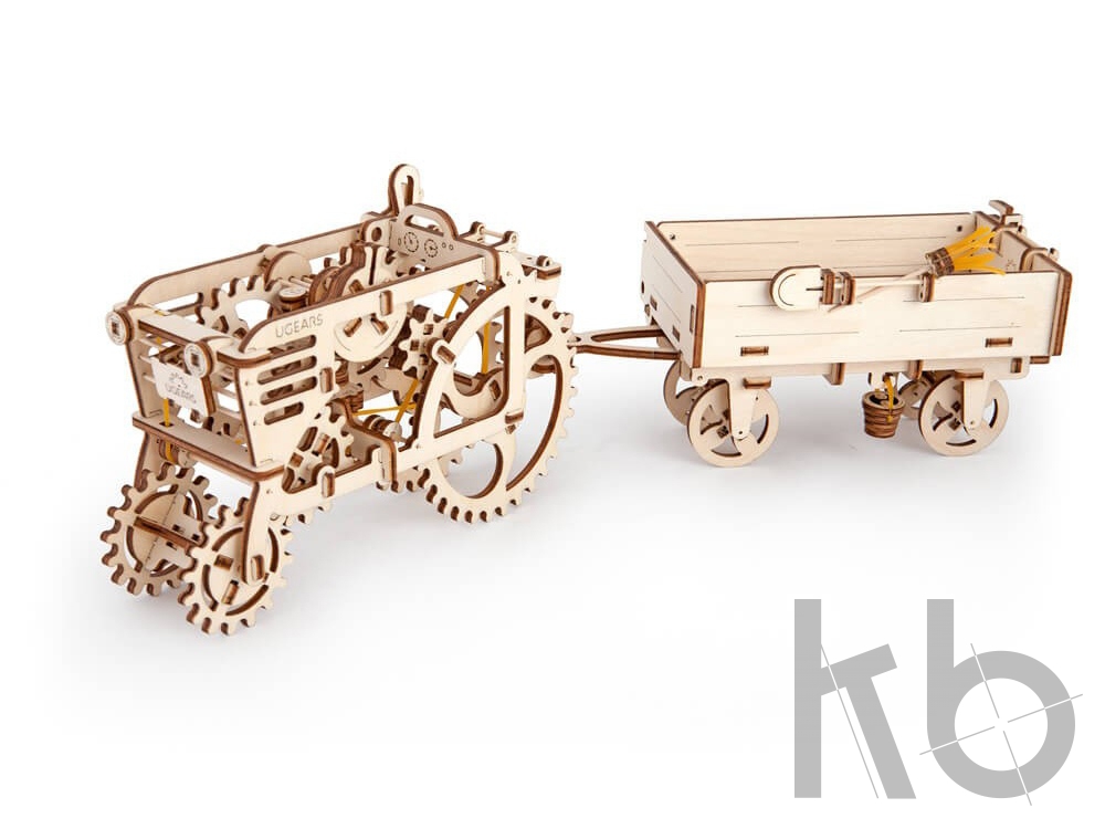 Прицеп – это дополнение к модели Трактор от UGEARS. Не имея собственного резиномотора, оно крепится на специальный переходник-фаркоп к трактору и позволяет перевозить небольшие грузы. Поворотом рычага кузов откидывается набок, а крепящиеся к его бортам вилы, метла и лопата помогут в игрушечных работах. 68 деталей.
