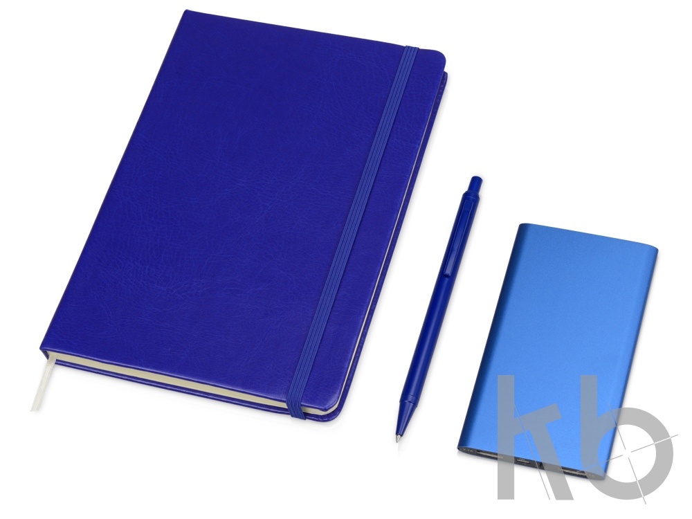 | Комплектность | блокнот А5 145 х 205 мм, пауэрбэнк 67 х 119 х 9 мм со съемными разъемами micro-usb, mini-usb, ightning, ручка шариковая d8 х 140 |