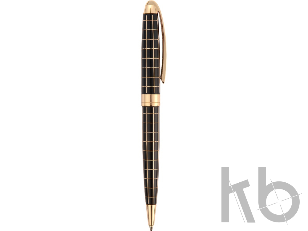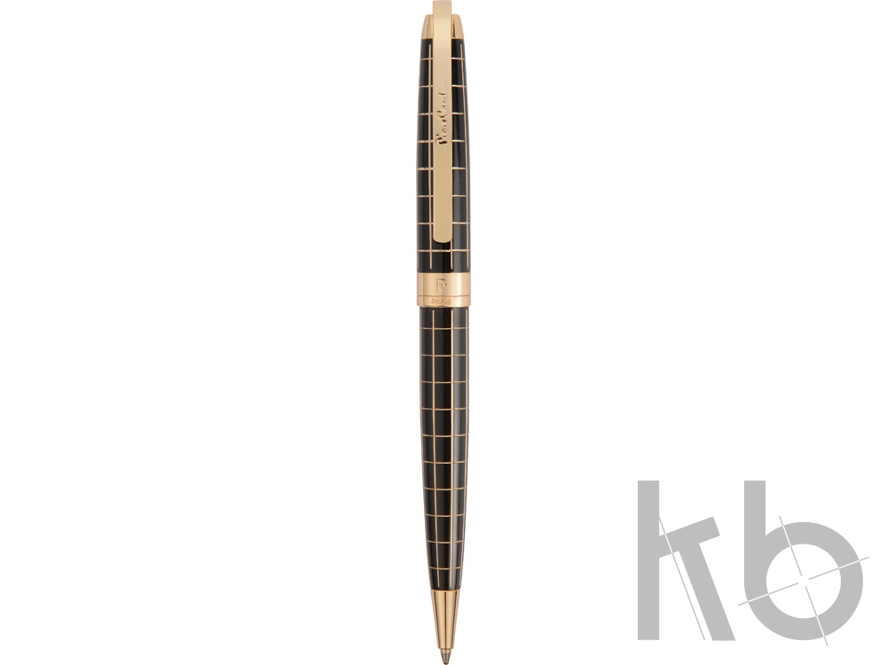 Шариковая ручка Pierre Cardin PROGRESS. Корпус - латунь с гравировкой и лак, покрытие металлом. Отделка и детали дизайна — золотой, гравировка клетка. Цвет — черный/золото