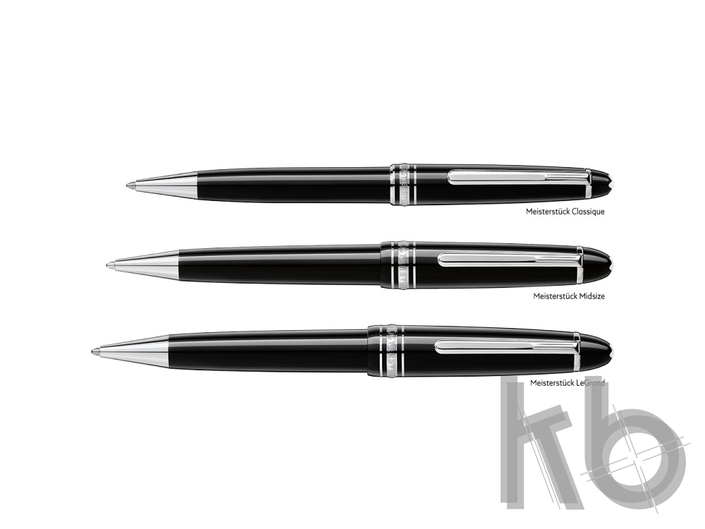 Модель Meisterstück Midsize из драгоценной смолы глубокого черного цвета, оформленная деталями с платиновым напылением и белой эмблемой Montblanc, стала образцом культового дизайна. Meisterstück Midsize представляет собой нечто среднее между моделями LeGrand и Classique.