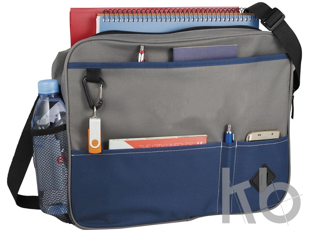 Сумка Hayden. Конференц сумка с основным отделением на молнии. Открытое отделение для флаеров или листовок. Карабин для ключей. Карман для бутылки сбоку. Ручка сверху. Регулируемый ремень на плечо. 600d полиэстер.
