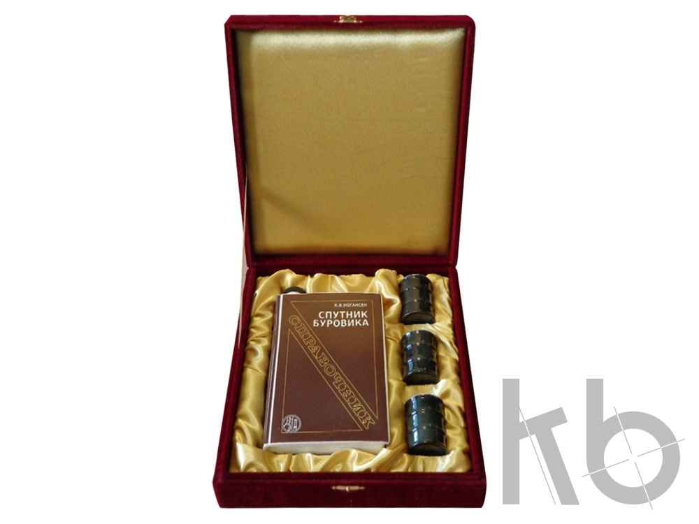 Настольная книга Буровика оригинальный бизнес подарок, который состоит из штофа стилизованного под металлическую флягу и трех стопок в виде бочек для необработанной нефти. Этот оригинальный и сравнительно недорогой бизнес подарок идеально подойдет человеку старого уклада связанного с обработкой и добычей нефти. Подарок выполненный в виде легендарного справочника Иогансена «Спутник буровика» будет отличным статусным подарком.
