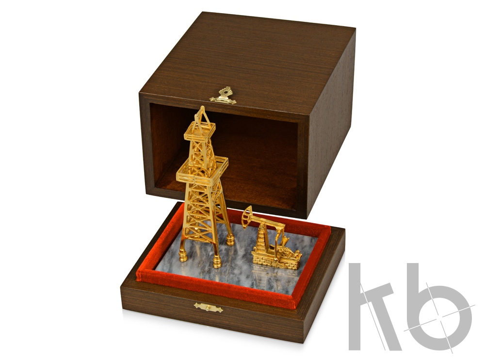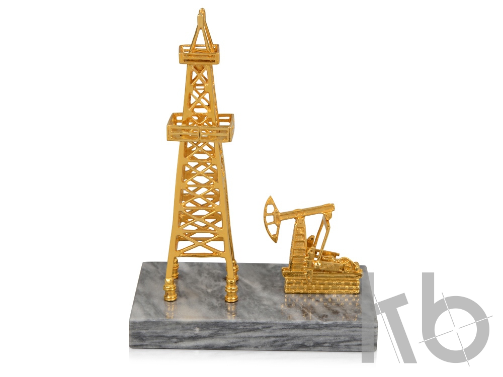 Эксклюзивное изделие «Нефтяная вышка». Этот сувенир изготовлен из латуни по традиционной златоустовской технологии художественного литья с применением золочения и никелирования, и установлен на основание из натурального белого мрамора. «Нефтяная вышка» станет отличным подарком для человека, связанного с делом нефтедобычи, и отлично украсит собою его рабочий кабинет.