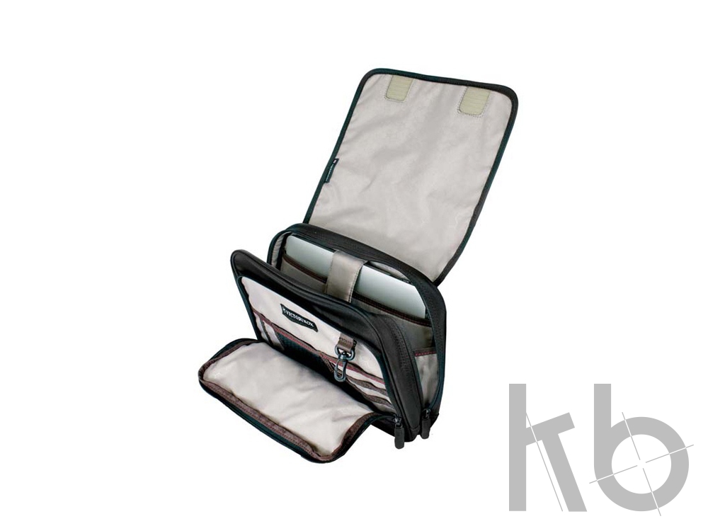 • Передняя панель на молнии имеет карман из воздухопроницаемой сетки AirMesh для хранения электронных аксессуаров, который помогает увеличить время работы аккумулятора, карман из микросетчатого материала для документов, удостоверяющих личность, отделения для карточек, держатели для ручек и карабин для ключей,