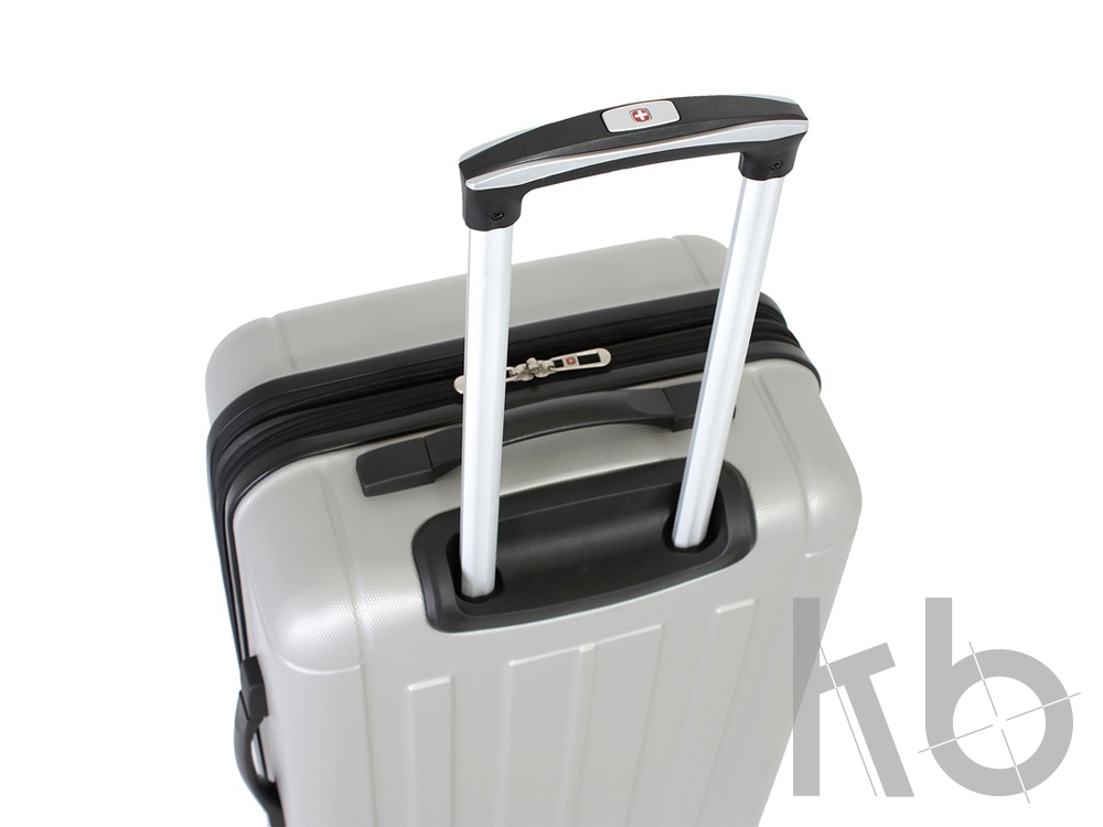 Корпус чемодана выполнен из специального пластика повышенной прочности (АБС-пластик), имеет хорошую противоударную устойчивость. Внутреннее отделение разделено на отсеки: имеются два отсека повышенной вместительности для основных вещей – нижний, с х-образной резинкой-фиксатором и верхний отдел с эластичной сеткой – для дополнительных вещей, с закрывающимся карманом на молнии. Также предусмотрен карман для полезных мелочей. Вместительность чемодана может быть дополнительно увеличена на 6 см. Чемодан легко перемещается при помощи четырех колес вращающихся на 360 градусов и телескопическая ручка из алюминия с функцией фиксации складывается в специальный отсек. На внешних сторонах имеются эргономичные ручки: для верхнего и бокового захвата, также предусмотрены боковые ножки для бокового хранения чемодана. Чемодан закрывается на двустороннюю молнию, бегунки с функцией крепления замка.