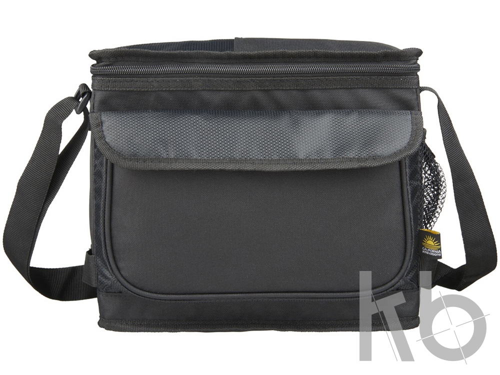 Сумка-холодильник California Innovations® для бизнес путешествий. Основное отделение на молнии может разместить до 9 банок. Передний карман с застежкой липучкой. Вверху плоский карман для билетов. Стропа для крепления к чемодану сзади. Регулируемый уплотненный ремень на плечо. Непротекаемая, легко моющаяся подкладка Пэва Ultra Safe™. Можно сложить и застегнуть на липучку сбоку. Поликанва 600D с акцентами добби.