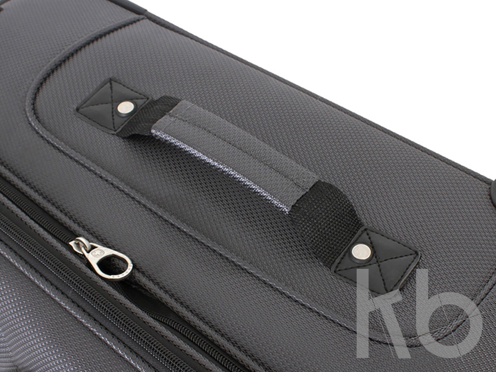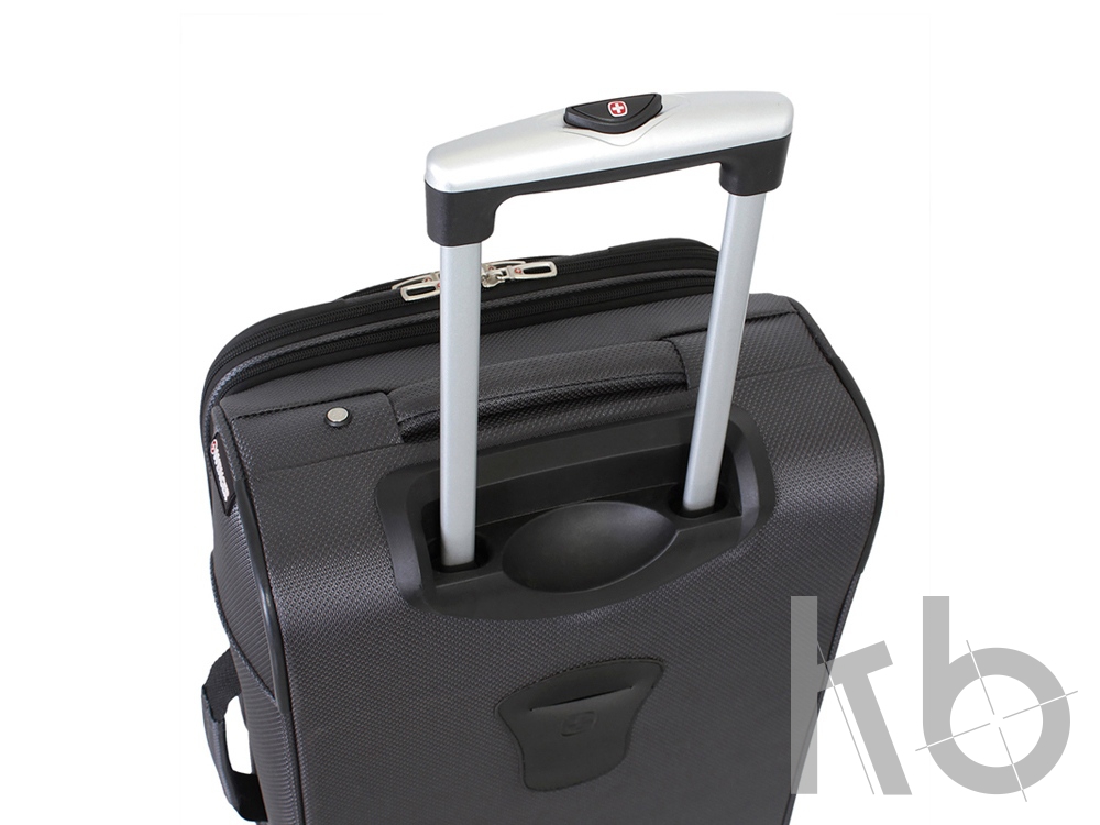 Телескопическая выдвижная алюминиевая ручка с функцией фиксации складывается в специальный отсек. Для комфорта при транспортировке сверху, с боку и в с нижней стороны чемодана расположены прочные внешние ручки, что позволяет легко поднимать и перемещать чемодан.