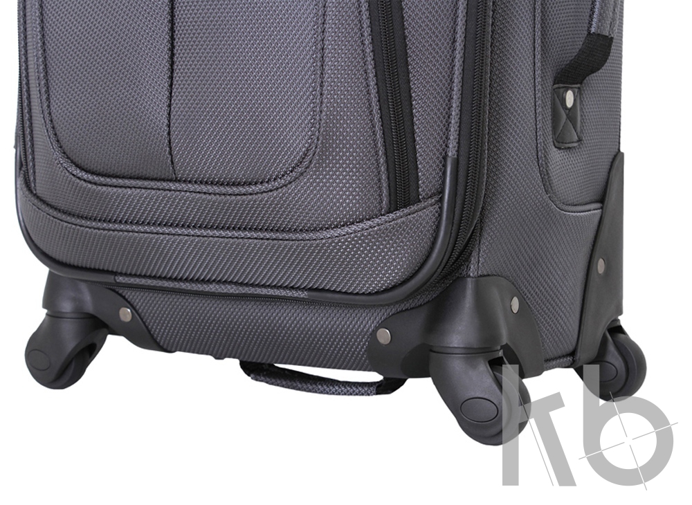 Снаружи чемодана расположены два кармана для мелких вещей для быстрого доступа. Чемодан легко перемещается при помощи 4 колес вращающихся на 360 градусов, что обеспечивает свободное движение во всех направлениях.