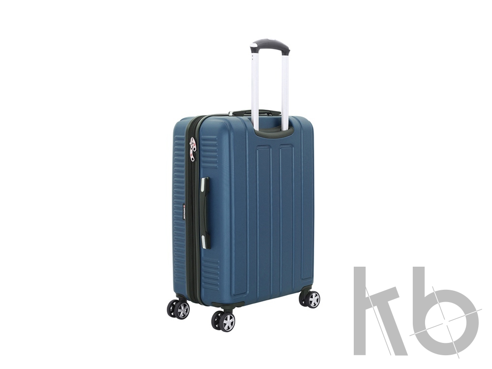 Сбоку чемодана расположены четыре пластиковых ножки. Вместимость чемодана может быть дополнительно увеличена на 5 см.