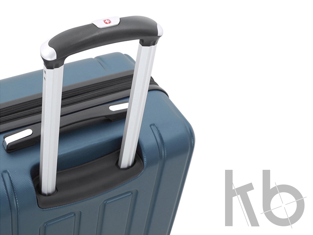 Телескопическая выдвижная алюминиевая ручка с функцией фиксации складывается в специальный отсек. Для комфорта при транспортировке сверху и боку чемодана расположены внешние усиленные ручки из формованной резины, что позволяет легко поднимать и перемещать чемодан.