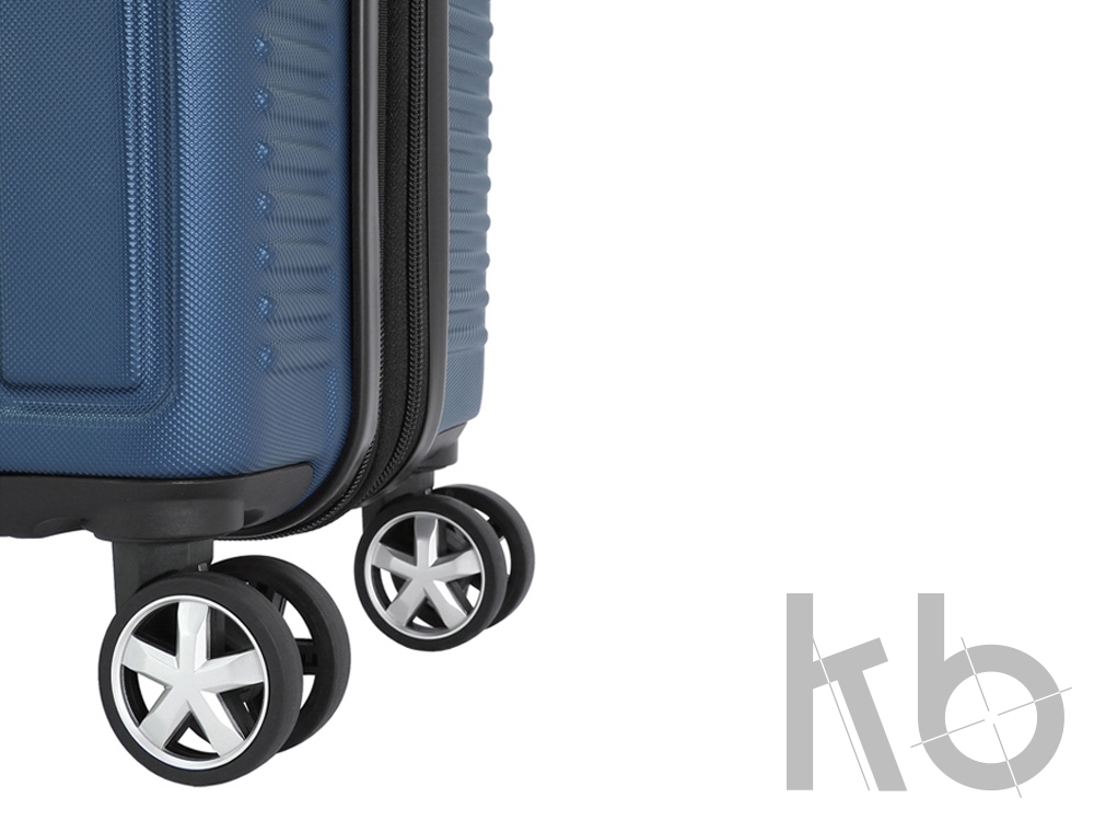 Чемодан легко перемещается при помощи 8 колес вращающихся на 360 градусов, что обеспечивает свободное движение во всех направлениях. Телескопическая выдвижная алюминиевая ручка с функцией фиксации складывается в специальный отсек.