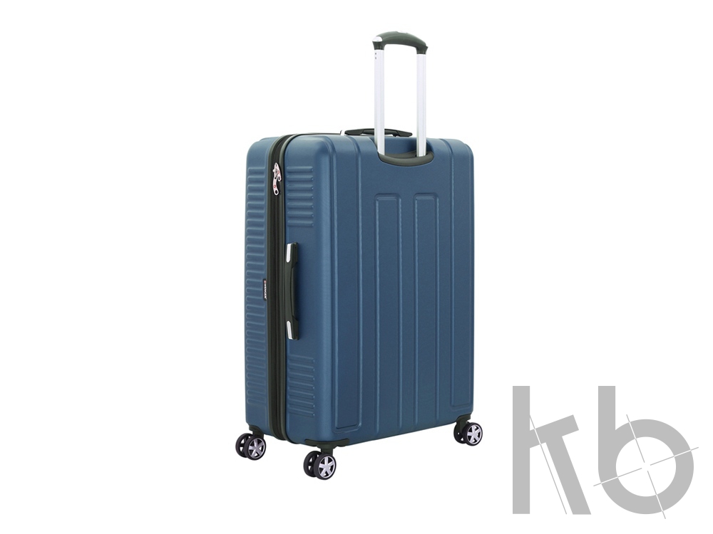 Сбоку чемодана расположены четыре пластиковых ножки. Вместимость чемодана может быть дополнительно увеличена на 5 см.
