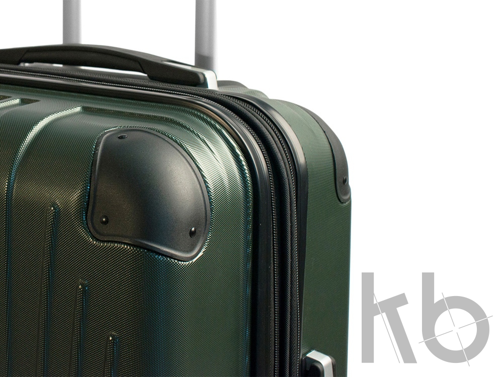 Сбоку чемодана расположены четыре пластиковые ножки. Углы чемодана закрыты специальными накладками, что обеспечивает большую надежность уязвимым местам.