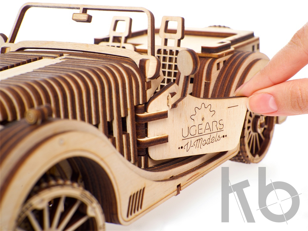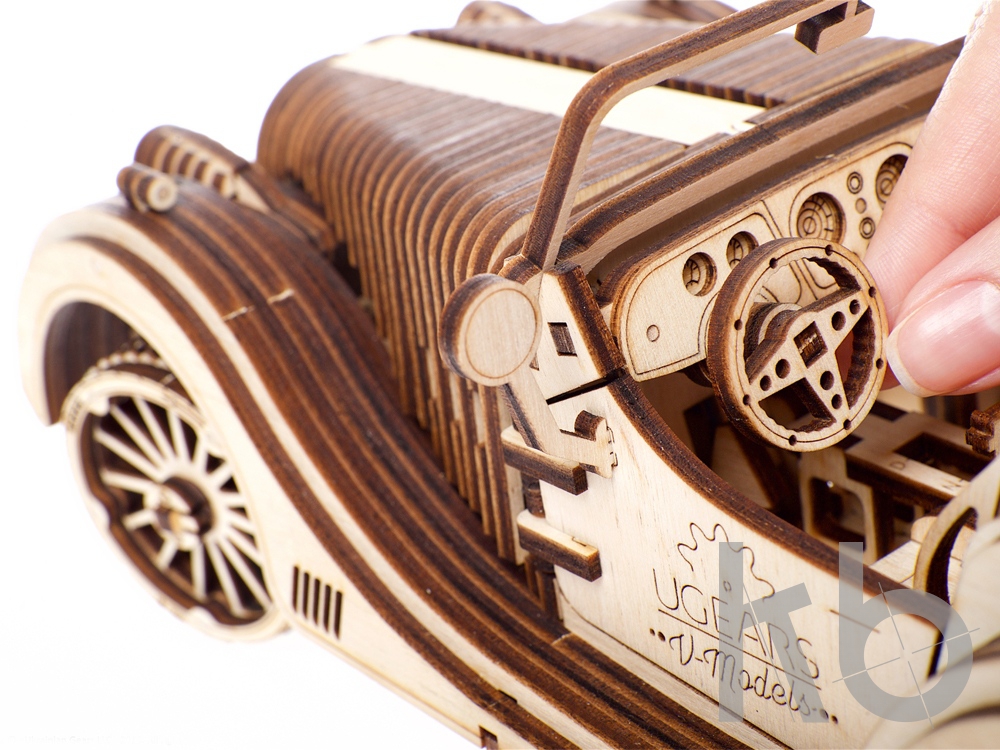 Родстер VM-01 от UGEARS - это сборная модель деревянного автомобиля с уникальной харизмой: утончённо элегантного, изысканно стильного и бескомпромиссно быстрого. Он уже готов занять почётное место в Вашей коллекции! После сборки деревянного конструктора Вы посмотрите на точную копию 8-цилиндрового двигателя за работой: поршни приводятся в действие резиномотором, но двигаются точно так же, как в настоящем движке. Вы можете открыть любую дверь автомобиля, покрутить руль и даже сменить скорость на коробке передач. С родстером VM-01 Вас ждут десятки часов позитива и от сборки модели, и от наблюдения за её работой. Машина будет прекрасно смотреться в любом интерьере и станет оригинальным подарком. 437 деталей.
