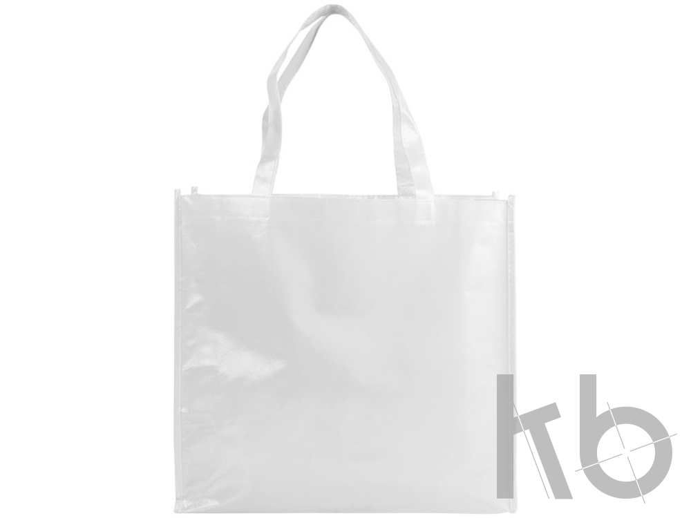 Блестящая ламинированная нетканая сумка-тоут для покупок. Удобная ламинированная нетканая сумка-тоут для покупок с ниспадающей ручкой длиной 23 см. Ламинированный нетканый полипропилен.