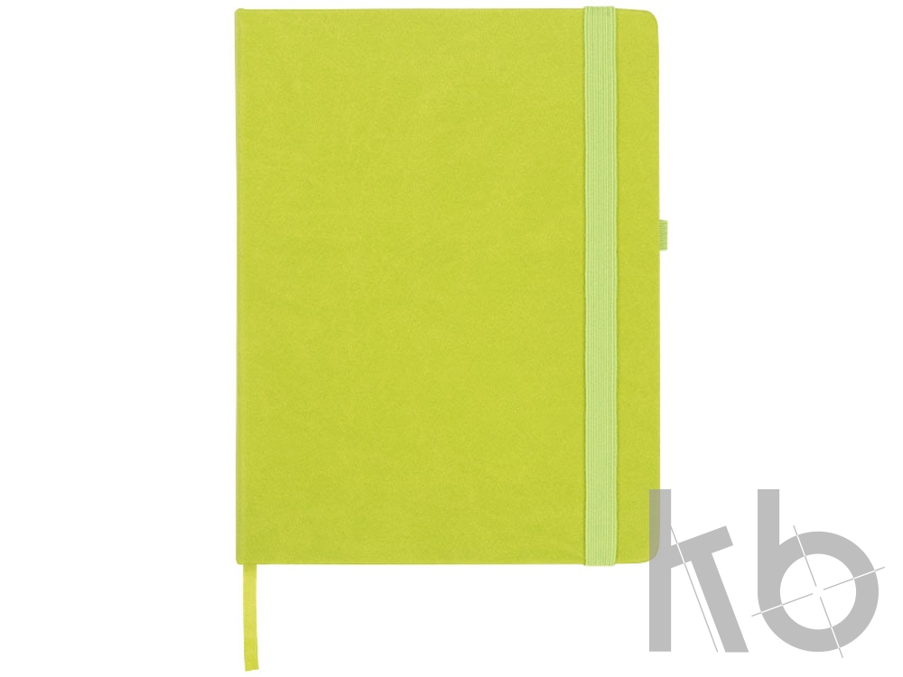 Блокнот Rivista большого размера. Блокнот Rivista отличается стильным современным дизайном с высококачественной обложкой, идеально подходящей для нанесения логотипа и информации вашей компании. Предлагаются современные цвета. Также предусмотрена эластичная застежка, держатель для ручки, лента-закладка и кармашек изнутри на задней стороне обложки. Содержит 128 листов линованной бумаги (70 г/м²) кремового цвета. ПУ.