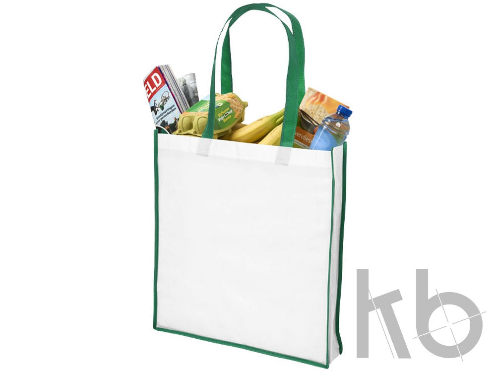 Большая контрастная нетканая сумка-тоут для покупок. Сумка для покупок из белого нетканого полипропилена с цветными ручками и окантовкой. Новый яркий дизайн. Большая и удобная версия сумки Contrast Mini Shopper. Нетканый полипропилен.
