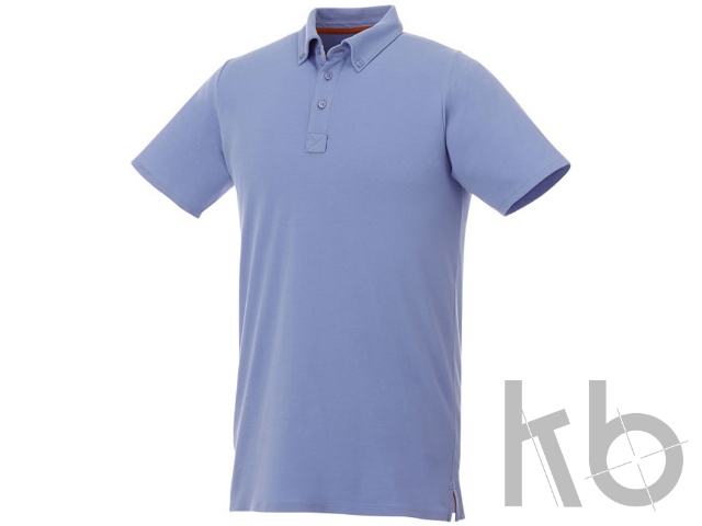 Мужская футболка поло Atkinson с коротким рукавом и пуговицами. Воротник из ткани изделия. Стрейтч-ткань. Планка с тремя пуговицами (мужская модель).Воротник на пуговицах. Боковые разрезы. Полоска на горловине в контрастном цвете. Полумесяц. Гравированные пуговицы в цвет изделия. Комфортный ярлык-трансфер на изделии. Двойное трикотажное пике, 95% хлопок и 5% эластан. 200 г/м².