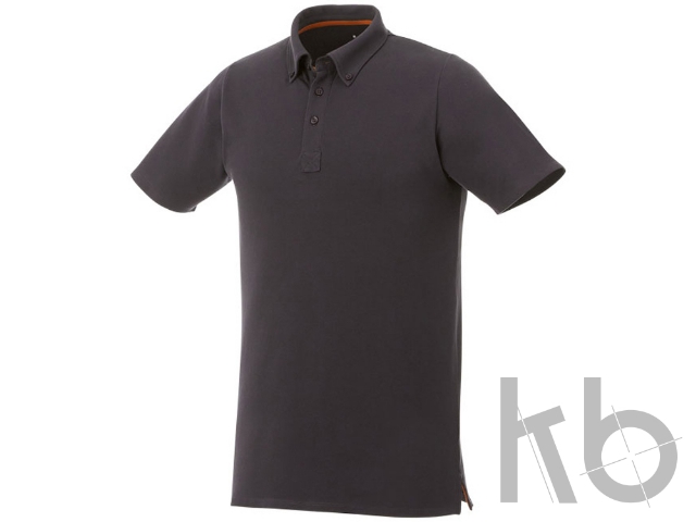 Мужская футболка поло Atkinson с коротким рукавом и пуговицами. Воротник из ткани изделия. Стрейтч-ткань. Планка с тремя пуговицами (мужская модель).Воротник на пуговицах. Боковые разрезы. Полоска на горловине в контрастном цвете. Полумесяц. Гравированные пуговицы в цвет изделия. Комфортный ярлык-трансфер на изделии. Двойное трикотажное пике, 95% хлопок и 5% эластан. 200 г/м².