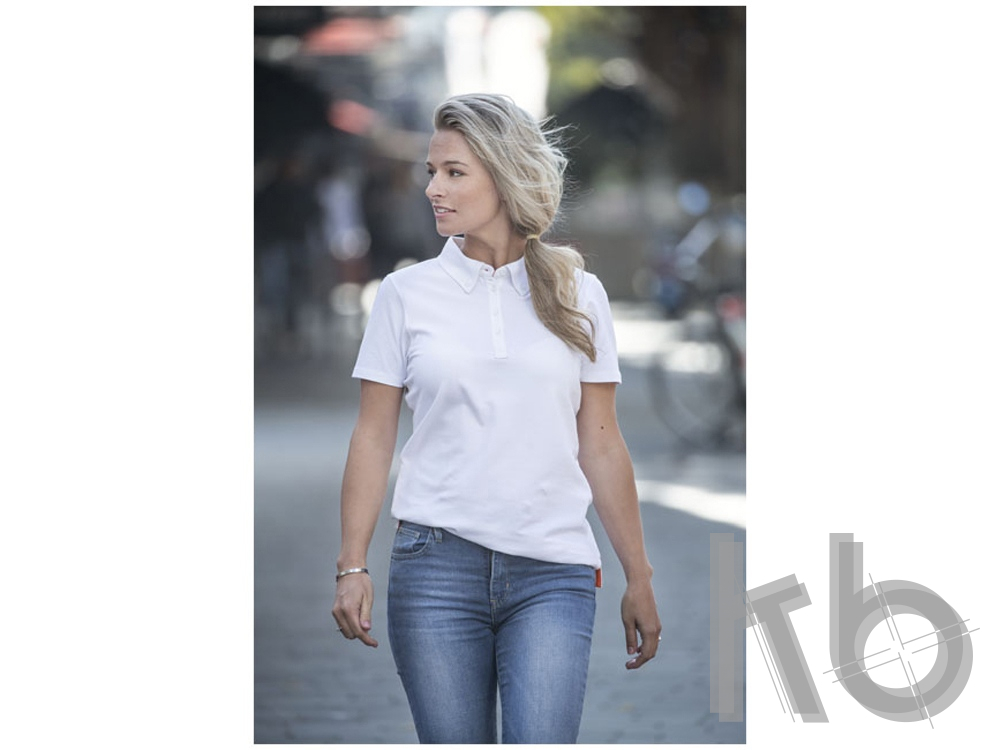 Женская футболка поло Atkinson с коротким рукавом и пуговицами. Воротник из ткани изделия. Стрейтч-ткань. Планка с четырьмя пуговицами. Воротник на пуговицах. Боковые разрезы. Полоска на горловине в контрастном цвете. Полумесяц. Гравированные пуговицы в цвет изделия. Комфортный ярлык-трансфер на изделии. Двойное трикотажное пике, 95% хлопок и 5% эластан. 200 г/м².