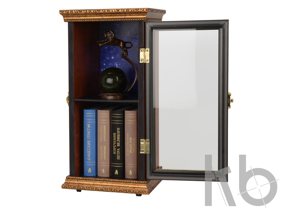 Подарочный набор в виде шкафчика с книжками карманного формата и интерьерной статуэткой, изображающей гордого Льва. Шкафчик представляет собой элегантную миниатюру реального предмета мебели. Его внутренний декор продолжает зодиакальную тематику. Изящная статуэтка послужит отличным украшением интерьера. Книжки из набора имеют удобный для чтения формат и презентабельное оформление переплета с элементами золотого тиснения. Неиссякаемым источником мудрости на каждый день послужат такие произведения из набора: