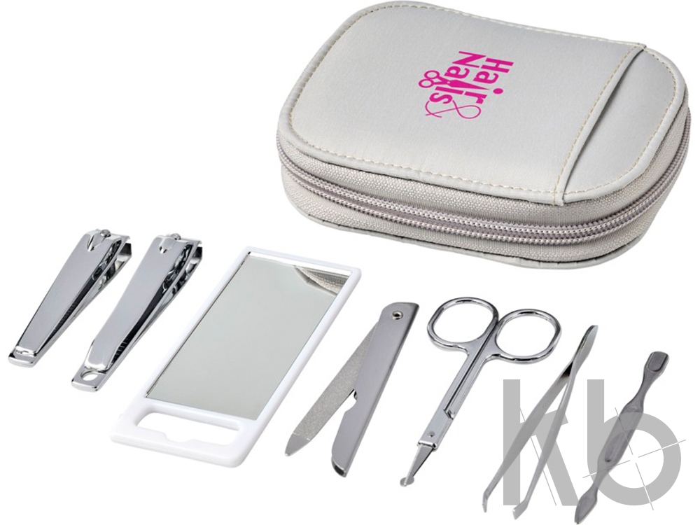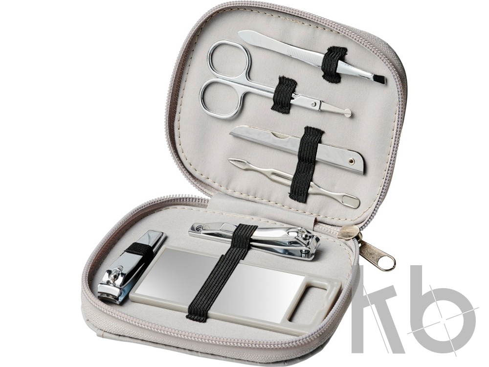 Набор для личной гигиены Groomsby из 7 предметов. Выглядеть отлично несложно. В набор входит зеркало, пинцет, кусачки для маникюра и педикюра, ножницы, пилочка и инструмент для кутикулы. Набор упакован в удобный нейлоновый чехол. Микроволокнистый нейлон. 3.