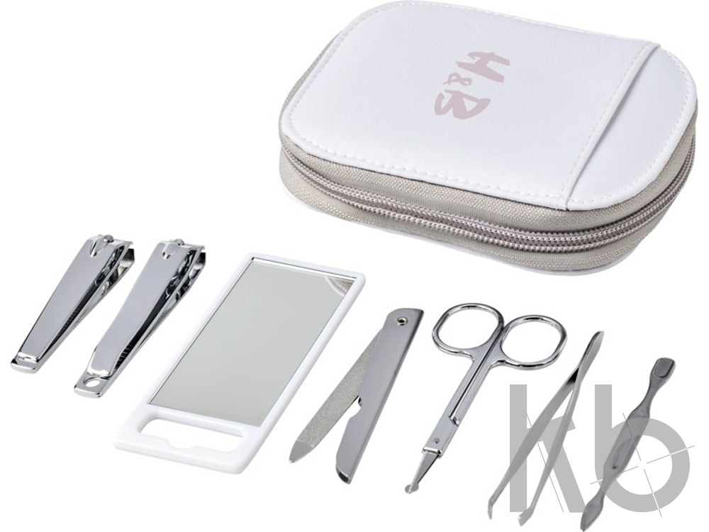 Набор для личной гигиены Groomsby из 7 предметов. Выглядеть отлично несложно. В набор входит зеркало, пинцет, кусачки для маникюра и педикюра, ножницы, пилочка и инструмент для кутикулы. Набор упакован в удобный нейлоновый чехол. Микроволокнистый нейлон.