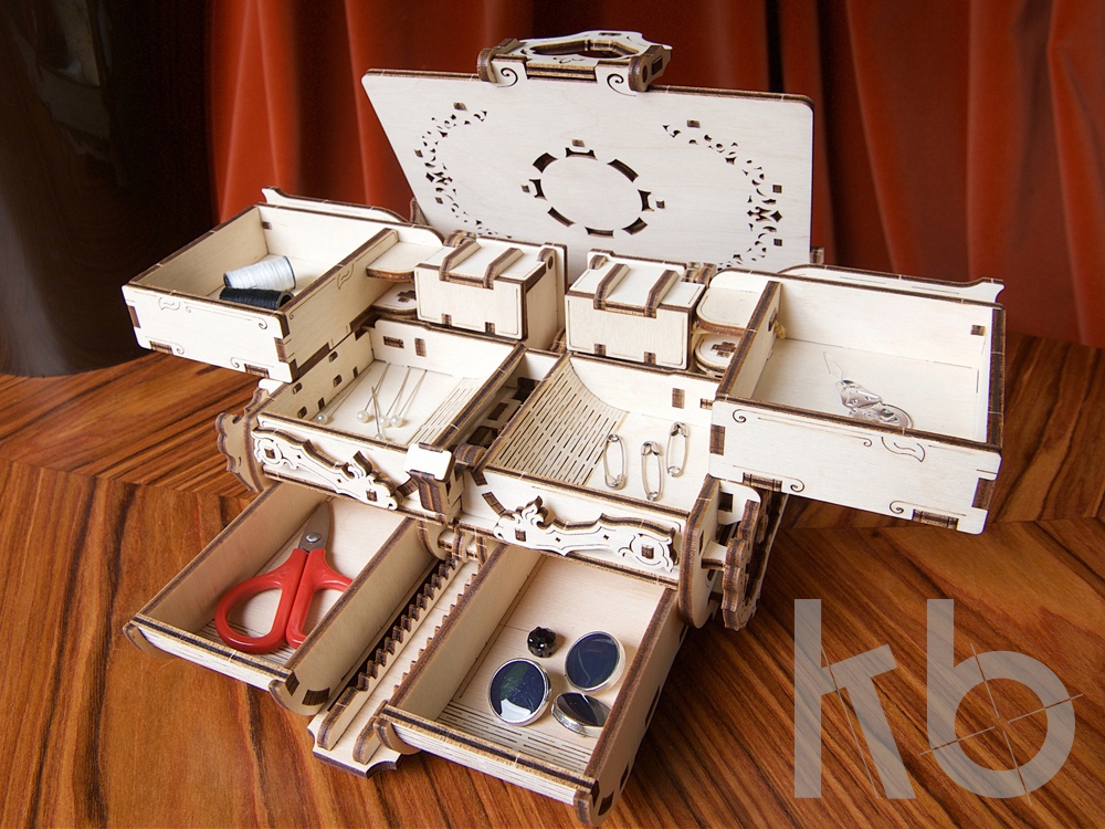 Где Вы храните любимые украшения? Впрочем, неважно: где бы они не лежали – забудьте, у нас есть вариант получше. Мы с гордостью представляем Вам одну из самых функциональных, интересных и красивых новинок от UGEARS: «Антикварную шкатулку». Украшенная искусной резьбой, практически невесомая и утонченно изящная, она безукоризненно дополнит композицию Вашего туалетного столика. В составе конструктора 185 деталей, а значит, он подарит Вам 2-3 часа искреннего удовольствия от сборки. Все детали выточены на лазерном ЧПУ, идеально подогнаны друг к другу – «Антикварная шкатулка» действительно предназначена для постоянного использования, а значит, она будет радовать Вас ежедневно! Особенности модели: - Шесть удобных ящичков под дорогие Вашему сердцу мелочи. - Два потайных отсека, открывающихся нажатием скрытой кнопки. - Чарующий механизм раскрытия отделений – за тем, как они появляются из-под крышки, можно наблюдать снова и снова! - Маленький замочек, надежно фиксирующий крышку в закрытом положении – Вы сможете взять шкатулку с собой в любую поездку. - Корпус оформлен в восточном стиле и украшен традиционными для него флористическими мотивами.
