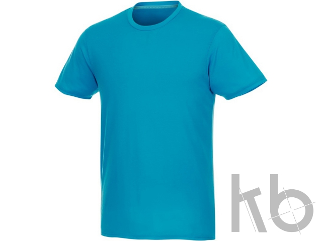 Мужская футболка Jade из переработанных материалов с коротким рукавом. Экологическая рекламная одежда. Круглый вырез горловины. Боковые швы. Лента от плеча к плечу. Двойная строчка на воротнике и внизу изделия. Трикотажное полотно гладкого переплетения из 100 % переработанного полиэстера. 160 г/м².