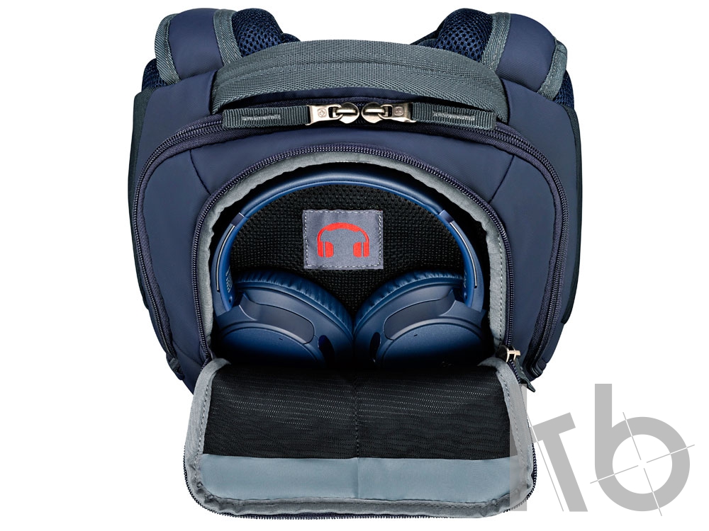 - Карман для наушников: Специальный карман для полноразмерных наушников в верхней части рюкзака.