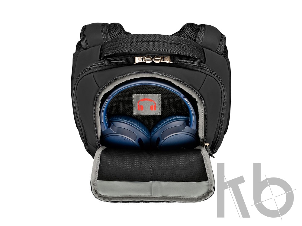 - Карман для наушников: Специальный карман для полноразмерных наушников в верхней части рюкзака.