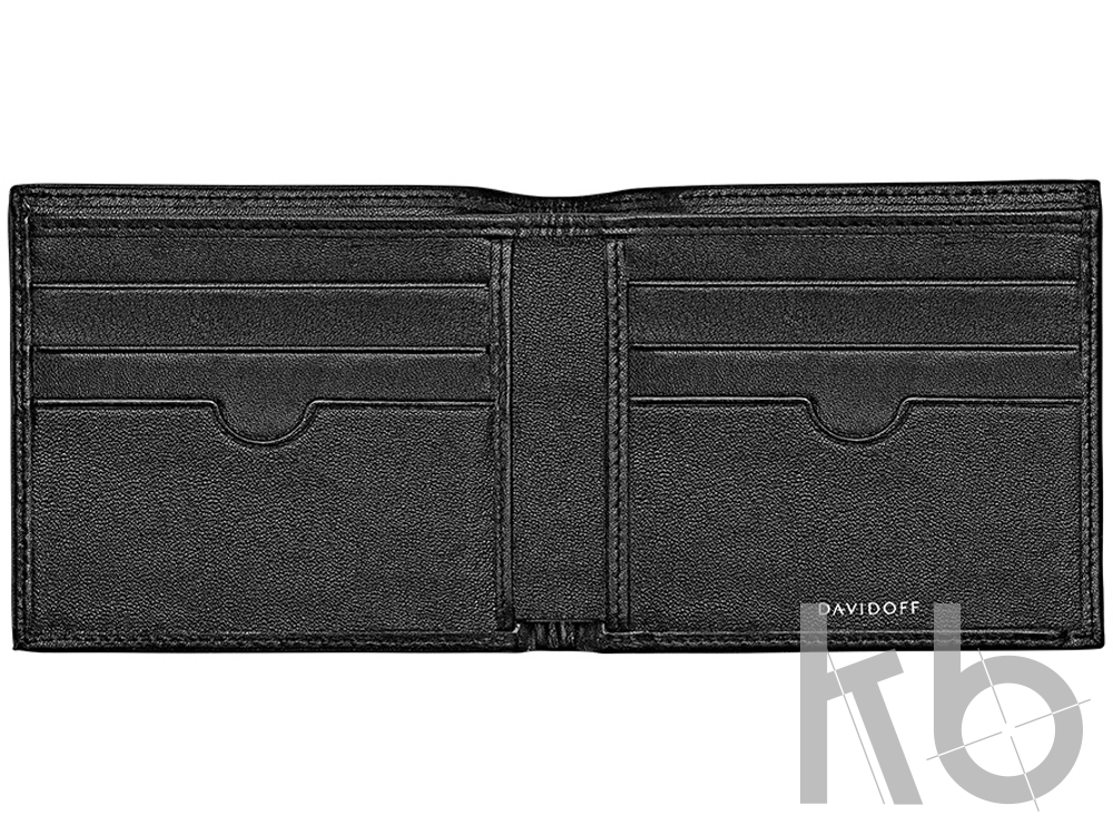 Бумажник от швейцарского бренда Davidoff из коллекции Essentials выполнен из натуральной телячьей кожи черного цвета, имеет 2 отделения для купюр и 6 для кредитных карт. Логотип Davidoff с тиснением на передней части и принт логотипа во внутренней части бумажника подчеркивает статусность и подлинность аксессуара. размер - 11,5*9,5*1 см. Гарантия 1 год.