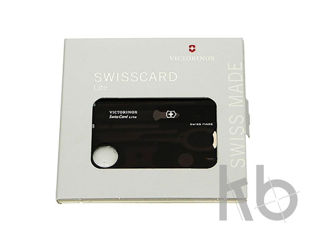 Швейцарская карточка SWISSCARD LITE – это многофункциональный набор из 13 предметов: 1. Нож для вскрытия конвертов 2. Ножницы 3. Пинцет 4. Шариковая ручка 5. Булавка из нержавеющей стали 6. Линейка (см) 7. Линейка (дюймы) 8. Лупа 9. Отвёртка 3 мм 10. Отвёртка 5 мм 11. Крестовая отвёртка 00-0 12. Крестовая отвёртка 1-2 13. Светодиод ХАРАКТЕРИСТИКИ: Цвет: полупрозрачный чёрный Длина: 82 мм Ширина: 54 мм олщина: 4,5 мм Размер в упаковке: 120 х 120 х 6 мм Вес нетто: 26 г Упаковка: плоская коробка с откидной крышкой