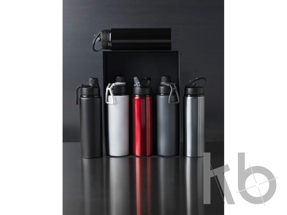 Алюминиевая бутылка с одинарными стенками и съемной крышкой с откидным носиком для питья. На крышке есть ручка для удобной переноски. Без содержания БФА. Объем 800 мл.