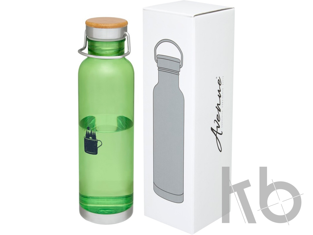 Спортивная бутылка с одинарными стенками из прочного материала от Tritan™. Устойчива к ударам, не пачкается и не пропускает запахи. Имеет съемную крышку с бамбуковым колпачком и ручку для удобной переноски. Без содержания БФА. Объем 800 мл. Представлена в подарочной коробке Avenue.