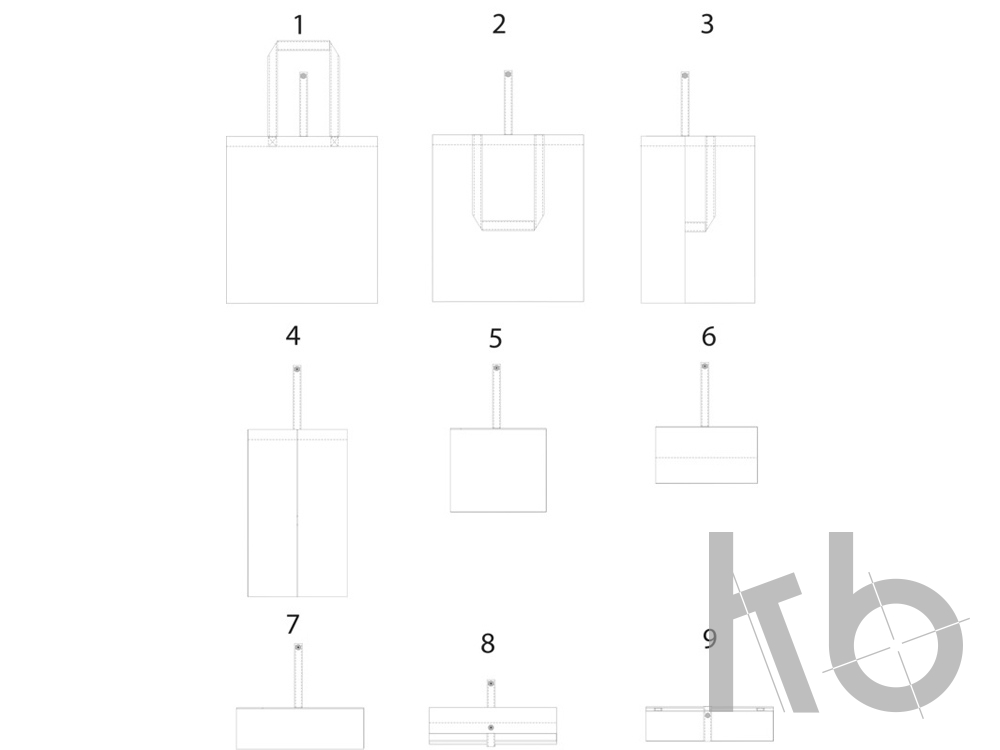 Эко-сумка с открытым основным отделением и цветными ручками, раскладывающаяся в высоту на 32 см. Имеет ремень с пуговичной застежкой, чтобы закрывать сумку. Прочность до 8 кг.