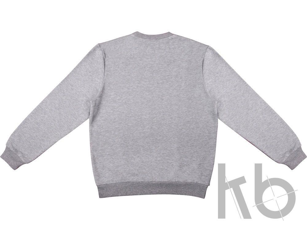 Свитшот из плотного хлопкового футера. Горловина, манжеты и низ отделан рибом 2х2. Горловина спинки внутри дополнительно укреплена тесьмой с выработкой елочка. Полотно из утяжеленного хлопкового футера внутри с петельками без начеса.