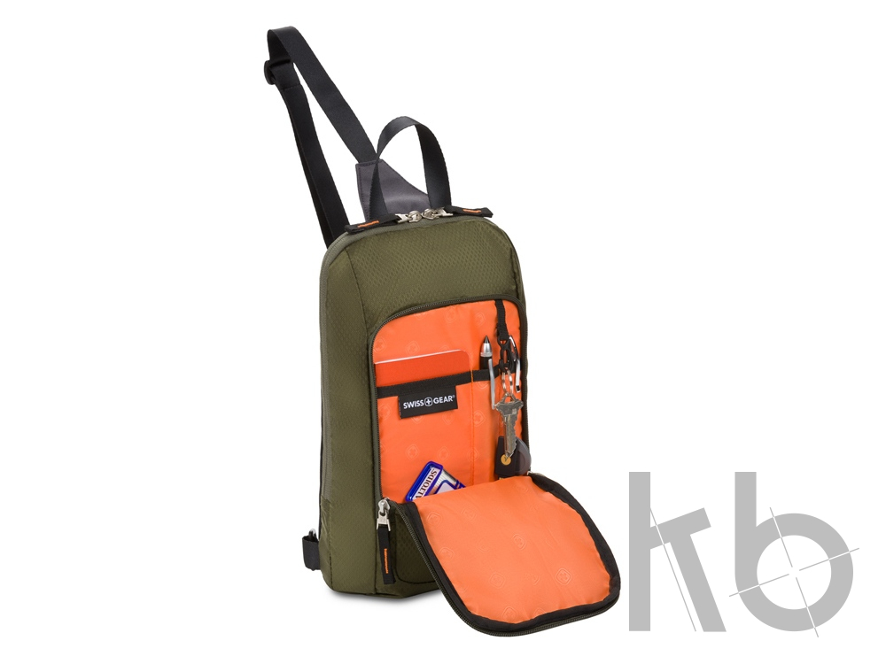 В Рекламно-производственной компании «КБ» Вы можете заказать «Рюкзак SWISSGEAR с одним плечевым ремнем, зеленый/оранжевый, полиэстер рип-стоп, 18 x 5 x 33 см, 4 л» с