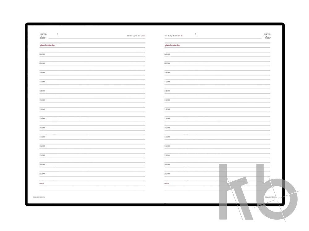 Твердая обложка со слегка закругленными уголками выполнена из гладкого переплетного материала с приятной на ощупь поверхностью soft-touch. По контуру обложки проходит строчка, делающая акцент на форме ежедневника. Благодаря внутреннему набивному слою обложка выглядит объемнее и привлекательнее.