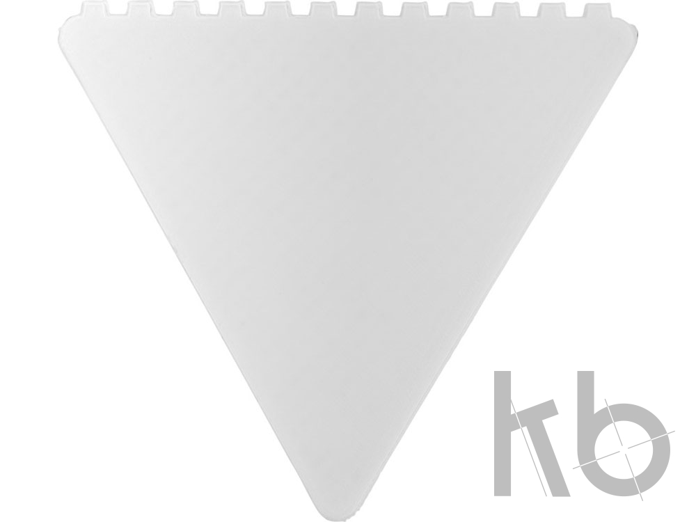Треугольный скребок для удаления льда с лобового стекла, имеющий большую площадь для декорирования. Сделано в Великобритании из переработанного полистирольной пластмассы. Переработанный HIPS пластик.