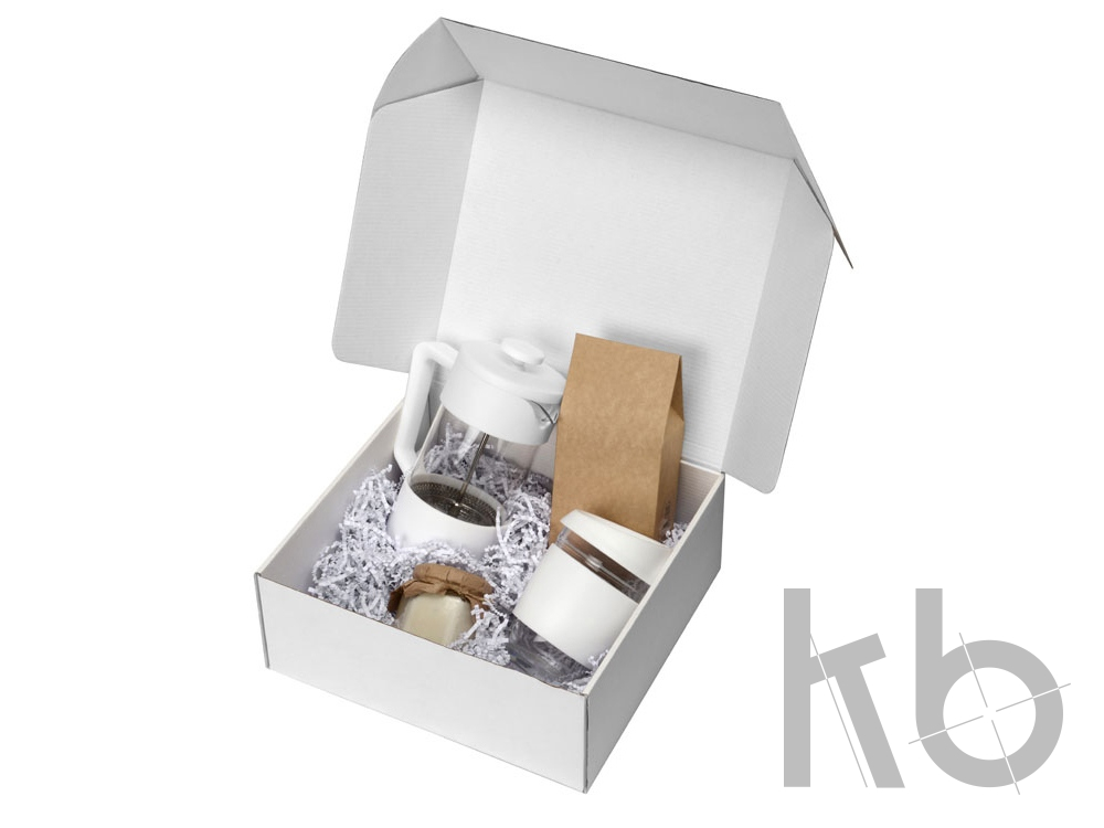 | Цвет товара | френч-пресс- прозрачный/белый, стеклянный стакан- прозрачный/белый, упаковка кофе- крафт, бумажный наполнитель- серый |