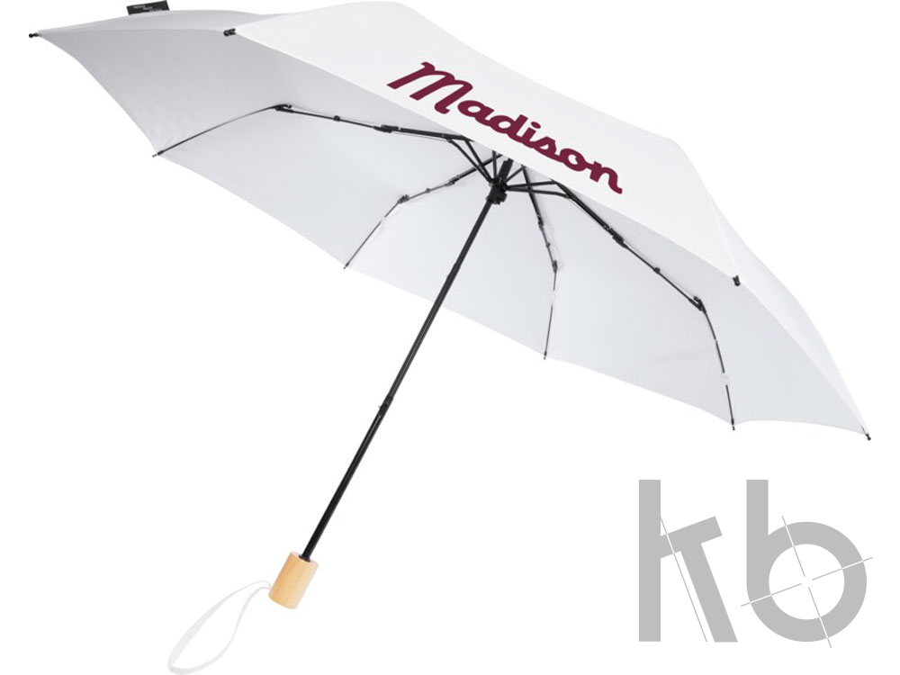 Ручной складной зонт с куполом из эпонж полиэстера и переработанного ПЭТ-пластика. Прочный металлический стержень, высококачественная рама со спицами из стекловолокна обеспечивают максимальную гибкость в ветреную погоду. Поставляется с чехлом и может легко поместиться в сумку или рюкзак для удобного ношения. Сочетание деревянной ручки и купола из эпонж полиэстера и переработанного ПЭТ-пластика обеспечивает надежность зонта. Доступен в различных модных цветах.