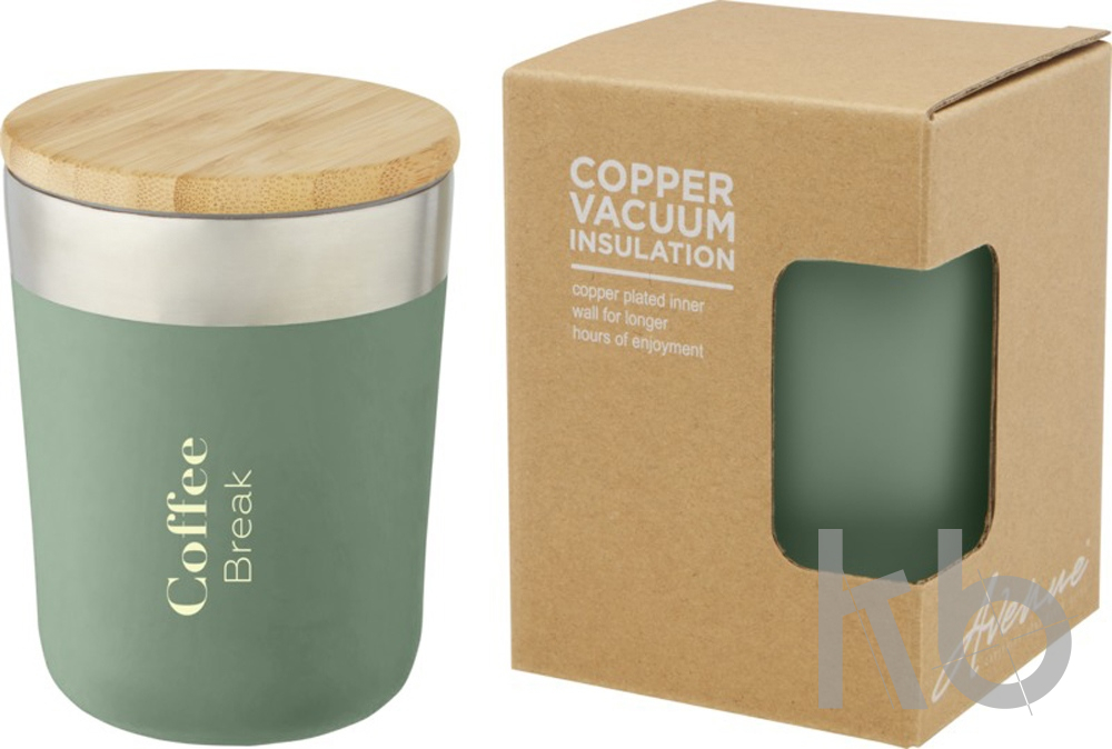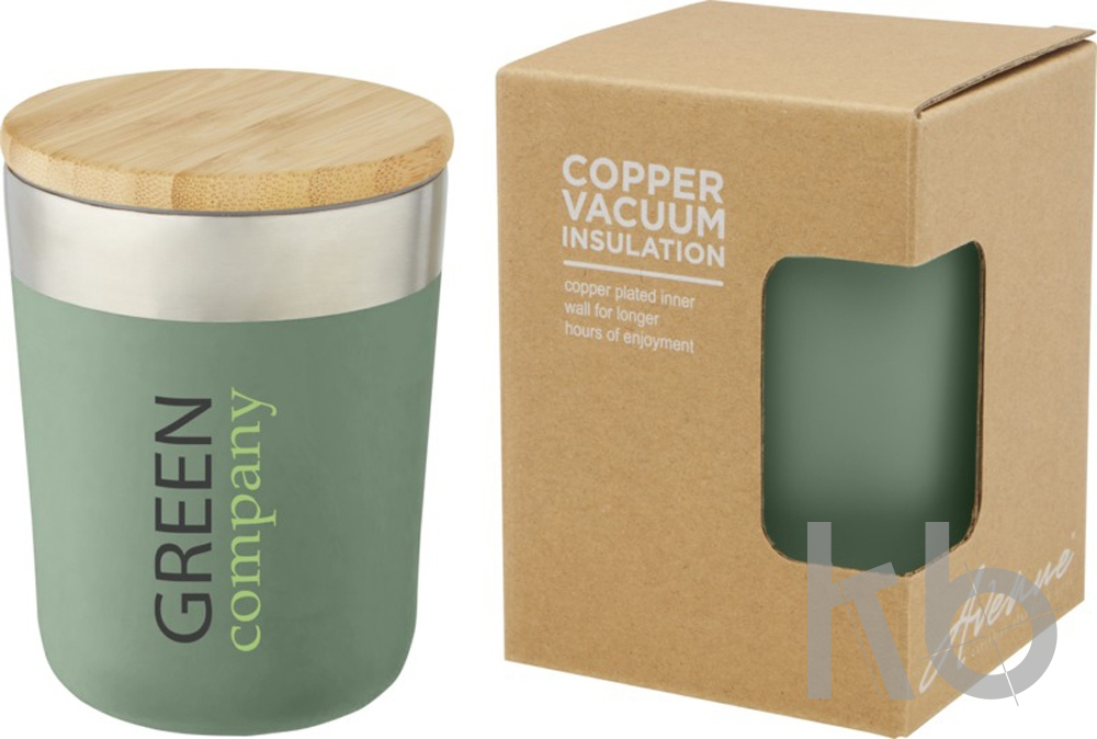 В Рекламно-производственной компании «КБ» Вы можете заказать «Lagan Кружка с медной вакуумной изоляцией объемом 300 мл и бамбуковой крышкой, зеленый» с