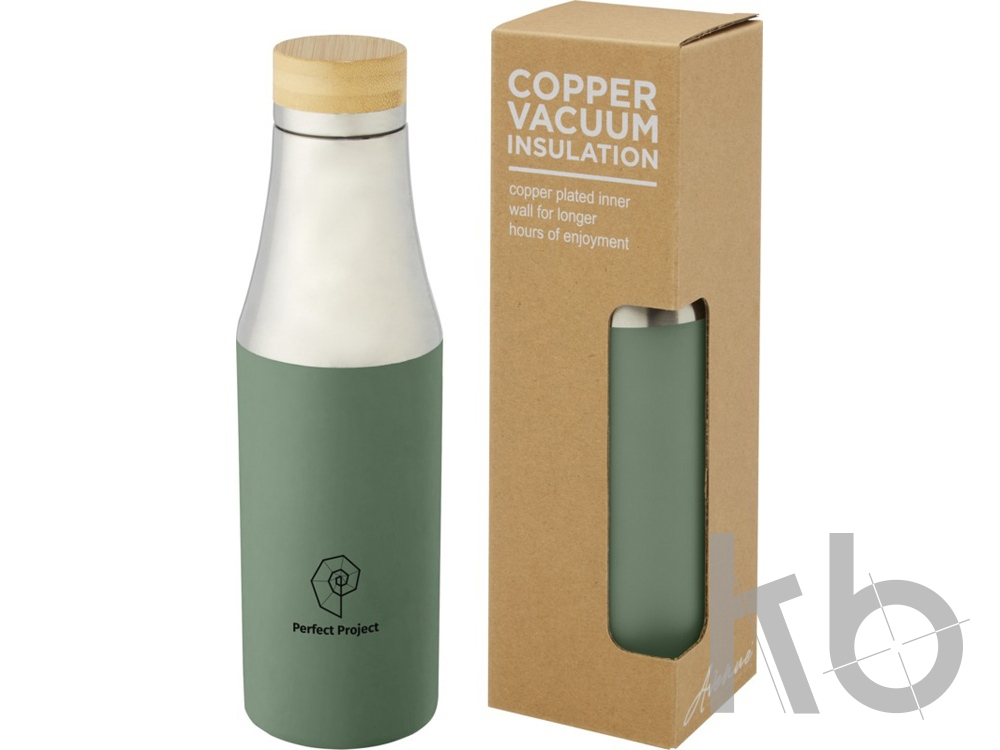 В Рекламно-производственной компании «КБ» Вы можете заказать «Hulan Бутылка объемом 540 мл с вакуумной изоляцией из меди и бамбуковой крышкой, зеленый яркий» с