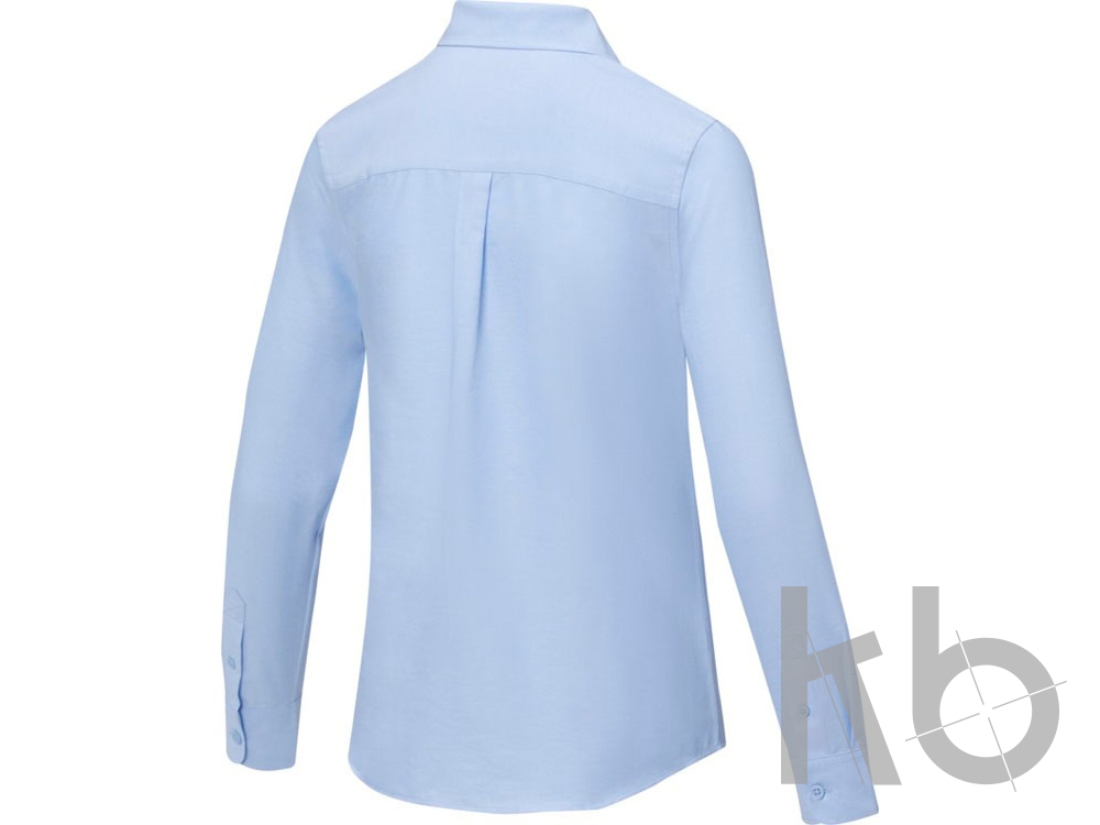 Pollux женская рубашка с длинными рукавами. Отрывной-отрезной лейбл. Регулируемая манжета рукава с одной складкой. Пуговицы в тон. Встречная складка на спинке. Ткань Оксфорд 55% хлопка, 45% полиэстера, 130гр.