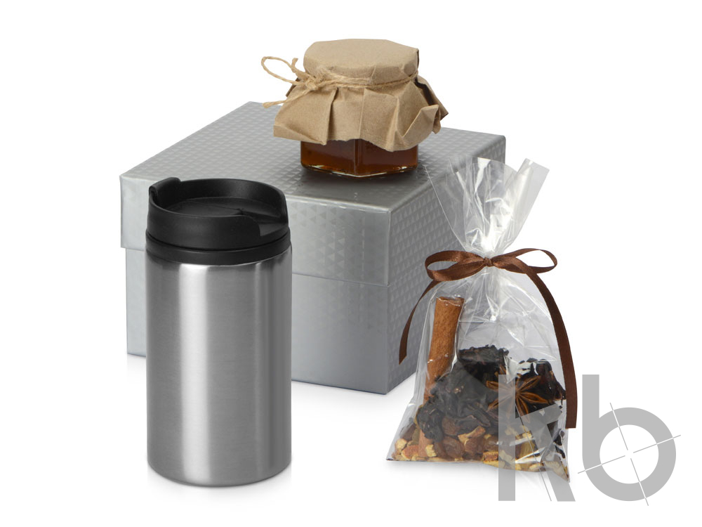 | Комплектность | термокружка d7,3 х 14,3 см, варенье 6,4 х 6,9 х 6,4 см, пряности |